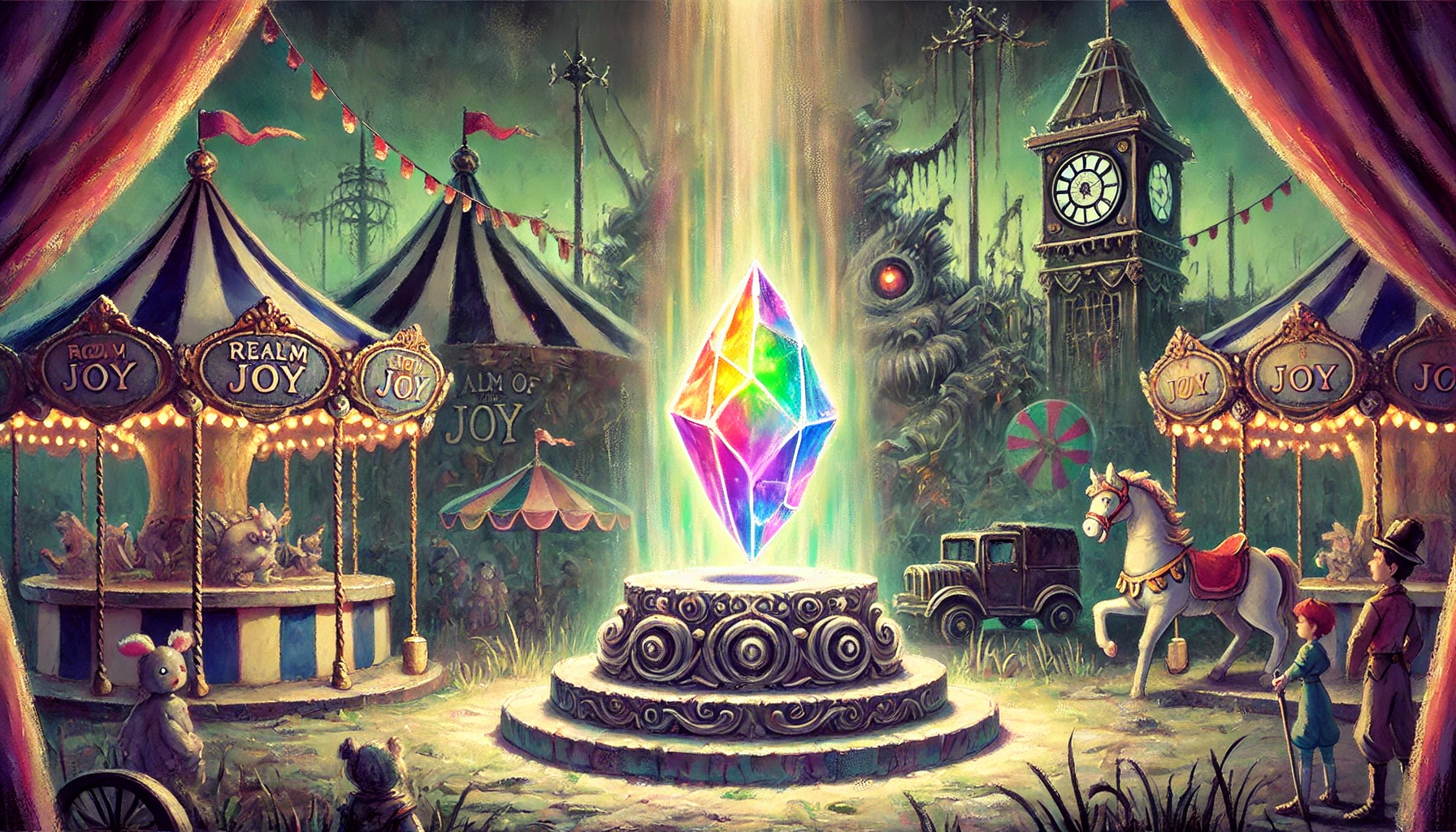 The Crystal of Joy has been corrupted, spreading despair in its place. To restore the magic of joy, you must navigate the twisted festival grounds and reclaim the Crystal.