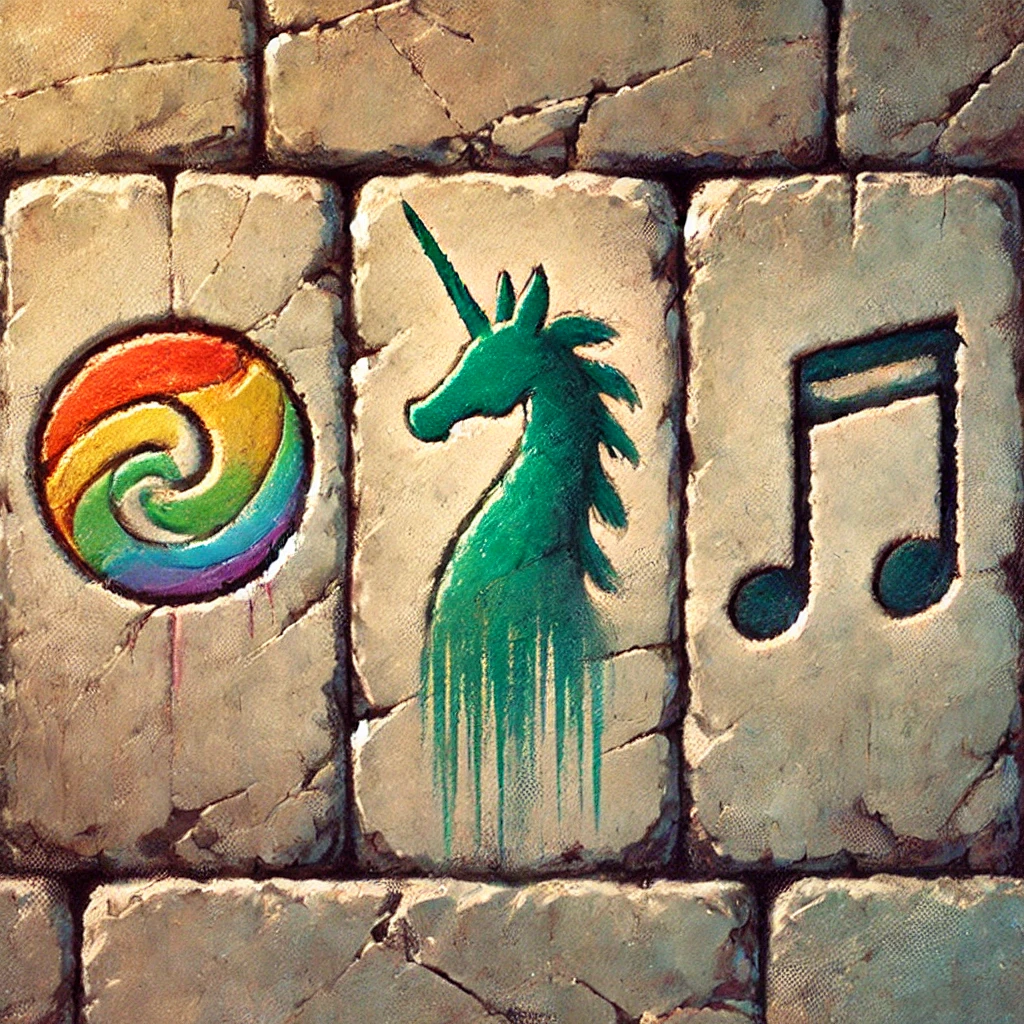 Upon the wall, three large symbols are painted, each distinct yet part of a hidden code. Studying them closely, you sense there’s a message to decode — a clue that will guide you to the final fragment of the Veil of Wonder.